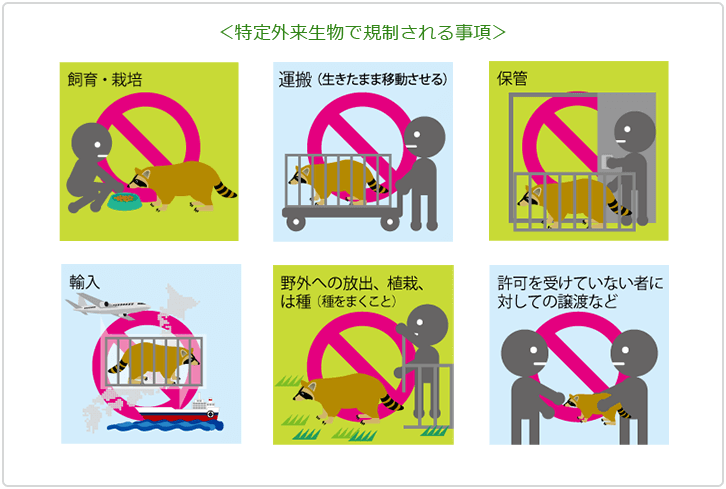 - 飼養等((飼育・栽培・保管・運搬))が原則禁止