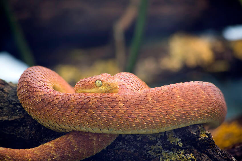 ブッシュバイパーは特定動物に指定されているクサリヘビ科の毒蛇です。同じクサリヘビ科にはマムシやハブが含まれています。