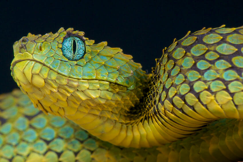 ブッシュバイパーの鱗が龍のようでカッコいいのですが、通常、飼育は不可能です。