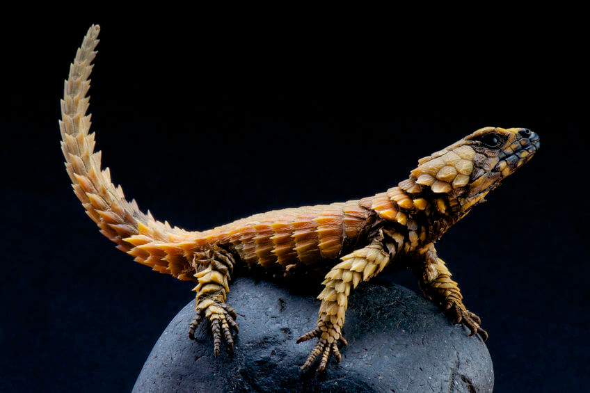 アルマジロトカゲは、南アフリカ共和国の荒野に生息するヨロイトカゲ科のトカゲです。岩や砂しかない荒れ果てた土地で、シロアリなどの小さい昆虫や蜘蛛などを食べて生活をしています。