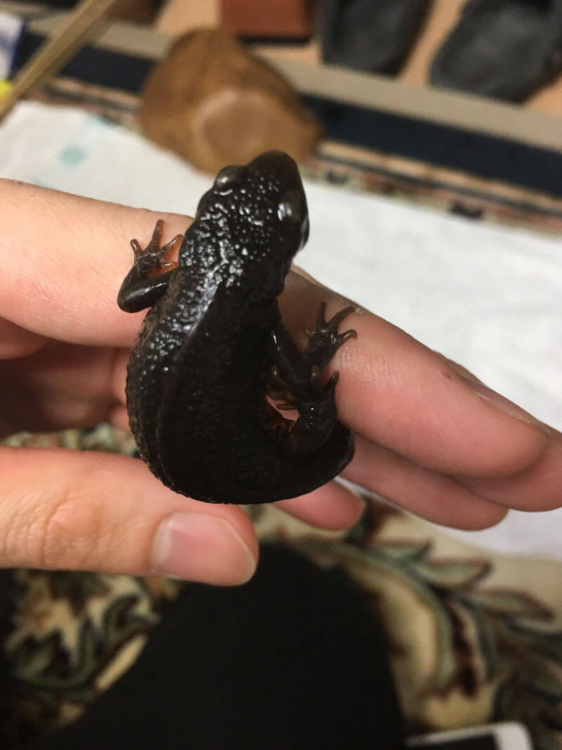 アカハライモリを触った後は手を洗うようにしましょう。