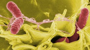 サルモネラ菌により、サルモネラ症になってしまうと、下痢、嘔吐、腹痛、発熱などの症状が現れます。治るまで、2〜7日ほどかかります。