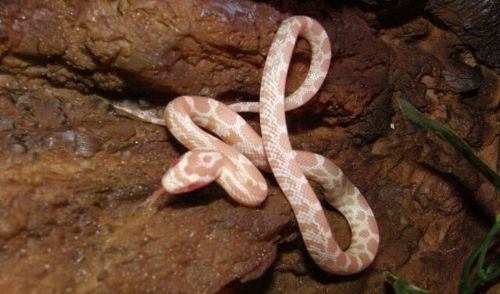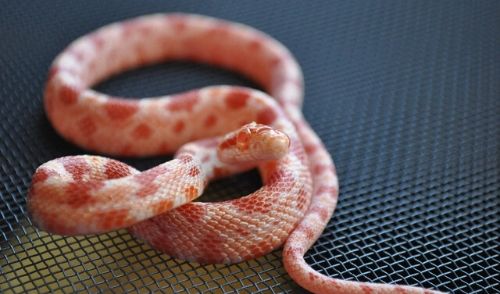 ブリザードは、コーンスネークの黒色色素が欠乏したモルフの一つです。ほとんど真っ白に近い体色とルビーのような赤い瞳が特徴的です。