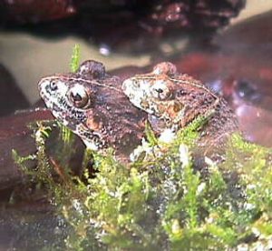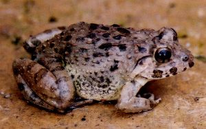 褐色の小型のカエルで、国内に生息する種類です。
