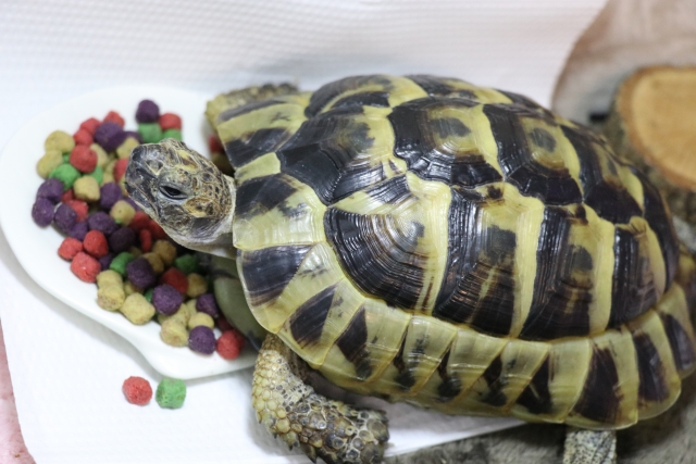 大人のリクガメにエサを与える頻度は1日1回程度で問題ないです。