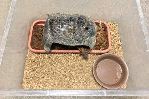 ケージの半分を水にする、という程の水分は必要ではありませんが、常に湿っている場所がある方が良いです。全体を湿らせてしまうと、汚れから皮膚病になってしまうことなどがあるため、湿っている場所と湿っていない場所を作ってあげるのが良いでしょう。