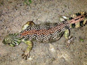 赤、黄色、緑の体色が美しく、最も人気のあるトゲオアガマの種類です。ヨーロッパからのCB個体や、モロッコなどからの野生採取個体が流通します。最大サイズは40cm程度です。