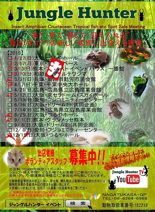 大人気の即売会がある爬虫類イベントの2019年版リストです。