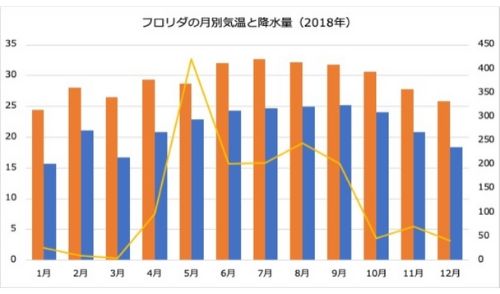 では、主要生息地の一つ、アメリカ合衆国のフロリダ州の気候を見てみましょう。